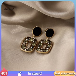 1 Cặp Bông Tai Hình Vuông Đính Đá Bắt Mắt Độc Đáo
