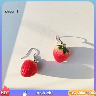 1 Đôi Bông Tai Hình Trái Dâu Tây Màu Đỏ Sống Động
