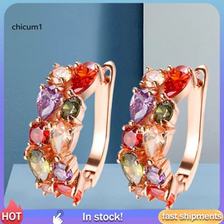1 Bông Tai Xỏ Lỗ Đính Đá Zircon Nhiều Màu Sắc Lấp Lánh Dành Cho Nữ