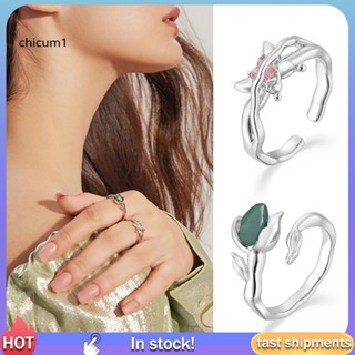 Nhẫn Hở Hình Hoa Tulip Đính Đá Zircon Có Thể Điều Chỉnh Kích Cỡ