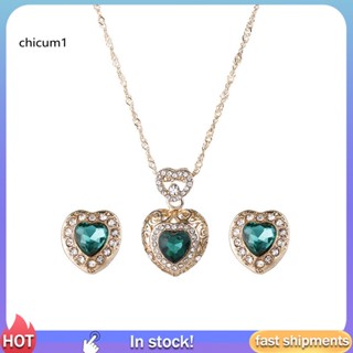 Bộ Vòng cổ + Bông Tai Bằng Hợp Kim Đính Đá Hình Trái Tim Thời Trang Cho