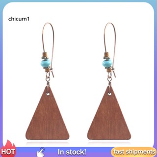 1 Cặp Bông Tai Gỗ Hình Giọt Nước Đính Hạt Phong Cách Bohemia
