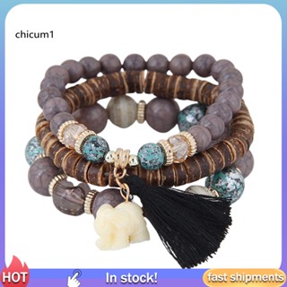 Set 3 Vòng Tay Dây Co Giãn Nhiều Lớp Đính Hạt Và Tua Rua Phong Cách Bohemia Cho Nữ
