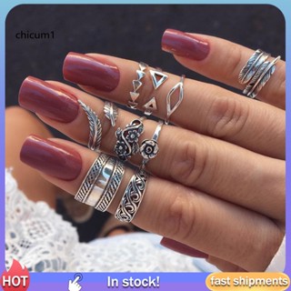 Set 12 Nhẫn Đốt Ngón Tay Chạm Khắc Đính Đá Phong Cách Cổ Điển