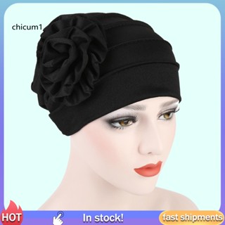 Mũ Trùm Đầu Co Giãn Bằng Sợi Vải Sữa Đính Hoa Lớn Màu Sắc Trơn Thanh Lịch