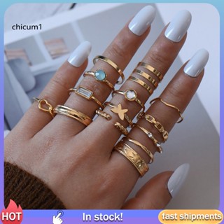 Set 1 / 2 Nhẫn Đeo Tay Kim Loại Đính Đá Đơn Giản Cho Nữ