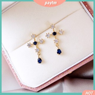 (PTM) Bông Tai Hình Thánh Giá Đính Đá Sapphire Giả Thời Trang Cho Nữ