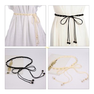 Thắt Lưng Bện Dây Mỏng Đính Ngọc Trai Trắng Phong Cách Boho Cho Nữ