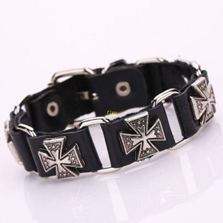 Vòng Tay Da Phối Mặt Thánh Giá Kim Loại Có Thể Điều Chỉnh Phong Cách Punk Cho Nam
