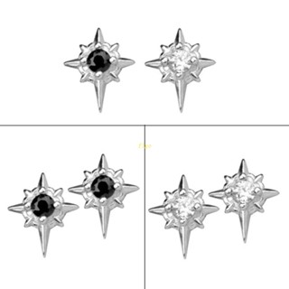 Đôi Khuyên Tai Hình Ngôi Sao Màu Đen / Bạc Đính Đá Zircon Thời Trang Cho Nữ