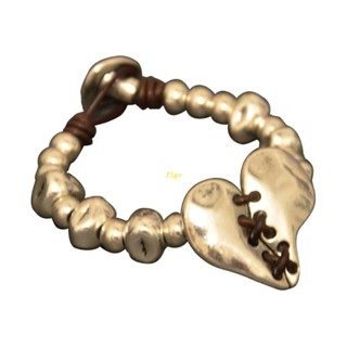 Flgo Vòng Tay Dây Da Bện Thủ Công Mặt Hình Trái Tim Phối Hoa Thời Trang Cho Nữ