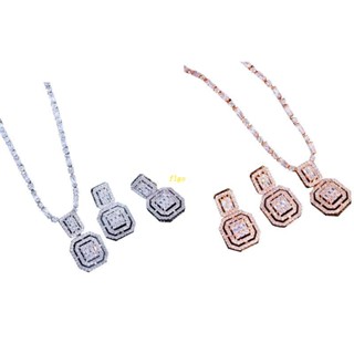 Flgo Set Vòng cổ Và Bông Tai Đính Đá Zircon Đơn Giản Quyến Rũ Thời Trang Cho Cô Dâu