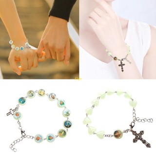 Vòng Tay Chuỗi Hạt Đá Rosary Dạ Quang Mặt Thánh Giá Thời Trang Cho Nam Và Nữ