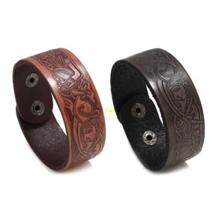 Flgo Novel Vòng Tay Da Bản Rộng Dập Nổi Họa Tiết Đơn Giản Có Thể Điều Chỉnh Trang Sức Cho Bạn Trai Husband