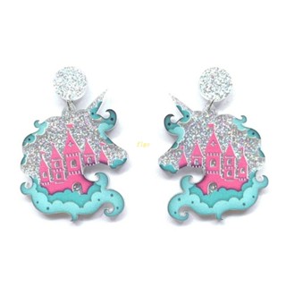 Flgo Bông Tai Acrylic Họa Tiết Kỳ Lân Hoạt Hình Nhiều Màu Sắc Lấp Lánh