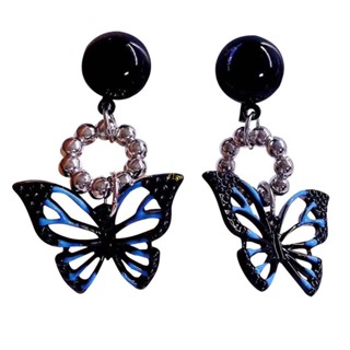 Bông Tai Dáng Dài Hình Bướm Màu Đen Thời Trang Sang Trọng Cho Nữ