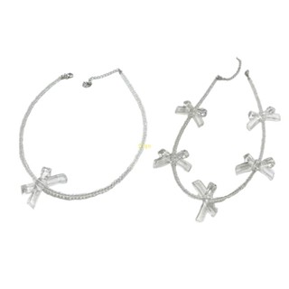 Flgo Vòng cổ Chuỗi Xích Mặt Nơ Trong Suốt Thiết Kế Tinh Tế Thời Trang Cho Nữ Và Te