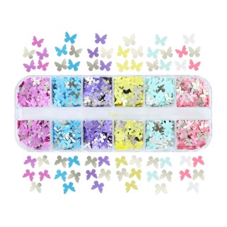 Hộp 12 Ngăn Đựng Phụ Kiện Trang Trí Móng Tay Hình Bướm Lấp Lánh