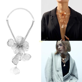 Vòng cổ Kim Loại Dài Phối Mặt Hoa 3D Sang Trọng Cho Nữ