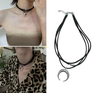 Vòng Cổ Choker Nhiều Lớp Mặt Hình Mặt Trăng Kim Loại Cổ Điển Cho Nữ