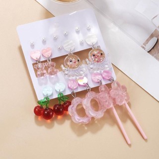 Bộ Khuyên Tai Lủng Lẳng Bằng Nhựa Resin Hình Gấu Cherry Hoạt Hình Phong Cách Bohemian Thời Trang 2023 Cho Nữ