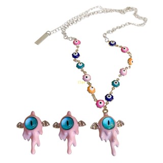 Bộ Vòng cổ + Bông Tai Y2K Hình Mắt Quỷ Bằng Hợp Kim Cho Nữ