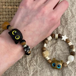 Vòng Tay Chuỗi Hạt Gỗ Tự Nhiên Đính Mặt Hình Mèo Và Ngôi Sao