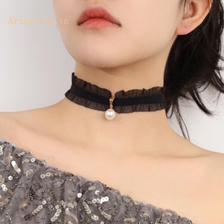 Vòng Cổ Choker Ren Đính Ngọc Trai Nhân Tạo Thời Trang