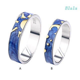 Bộ 2 Nhẫn Đeo Tay Bằng Hợp Kim Tráng Men Họa Tiết Bầu Trời Đầy Sao Màu Sắc Xanh Dương Độc Đáo Không Phai Màu Cho Nam