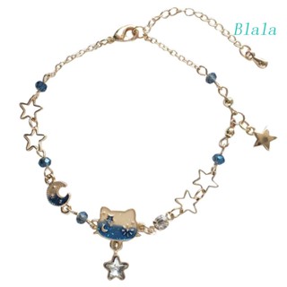 Vòng Đeo Tay Hình Mèo May Mắn / Ngôi Sao / Mặt Trăng Màu Xanh Dương Thời Trang Cho Bé Gái