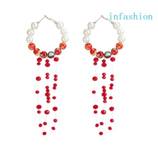 Khuyên Tai Tua Rua Dáng Dài Đính Đá Pha Lê Hình Giọt Nước Máu Phong Cách Halloween