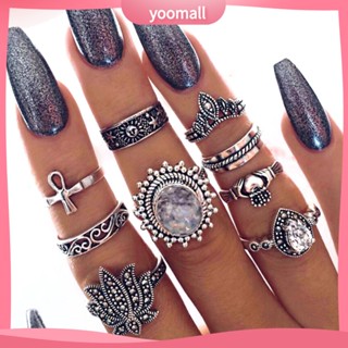 Bộ 9 Nhẫn Đeo Đốt Ngón Tay Đính Đá Phong Cách Retro Cho Nữ