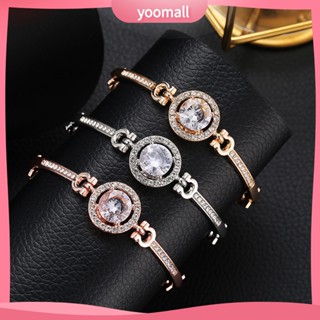 [YM] Vòng Đeo Tay Mạ Điện Đính Kim Cương Giả Lấp Lánh Sang Trọng Có Thể Điều Chỉnh Trang Sức Cho Nữ