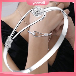 [YM] Vòng Tay Hợp Kim Hở Mạ Điện Sáng Bóng Hình Hoa Trang Trí Sang Trọng Không Phai Màu Làm Quà Tặng Trang Sức Cho Nữ