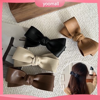 Kẹp Tóc Nơ Giả Da Hai Lớp Màu Trơn Chống Trượt Trọng Lượng Nhẹ Dành Cho Nữ