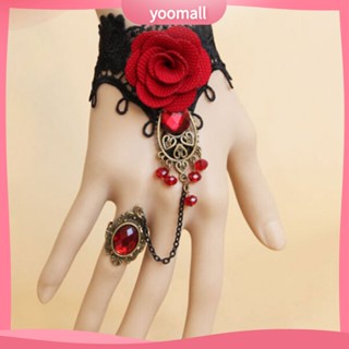 Vòng Tay Ren Hoa Hồng Kèm Nhẫn Có Thể Điều Chỉnh Kích Cỡ Phong Cách Gothic Thanh Lịch Dành Cho Nữ