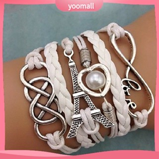 [YM] Vòng Tay Da Giả Nhiều Lớp Bện Sợi Hình Tháp Eiffel Trái Tim Sang Trọng Cho Nữ