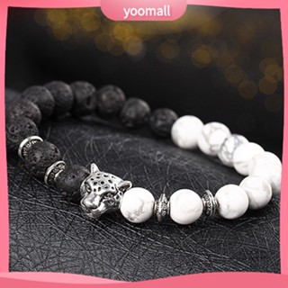 Vòng Tay Chuỗi Hạt Đá Tự Nhiên Mạ Bạc Phối Mặt Hình Đầu Báo Thời Trang Cho Nam Nữ