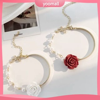 [YM] Vòng Đeo Tay Đính Hoa Hồng Mạ Điện Không Phai Màu Đính Ngọc Trai Giả Có Thể Điều Chỉnh Trang Sức Dự Tiệc Cao Cấp Kiểu Pháp Niche