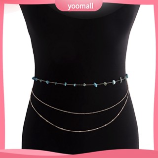 Dây Đeo Thắt Lưng Nhiều Vòng Đính Đá Ngọc Lam Nhân Tạo Phong Cách Bohemian Có Thể Điều Chỉnh Dùng Hàng Ngày