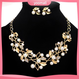 1 Bộ Vòng cổ + Bông Tai Hình Chiếc Lá Đính Đá & Ngọc Trai Giả Lấp Lánh Sang Trọng