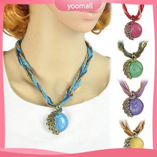 Vòng cổ Mặt Tròn Hình Chim Công Đính Đá Opal Nhân Tạo Phong Cách Bohemian