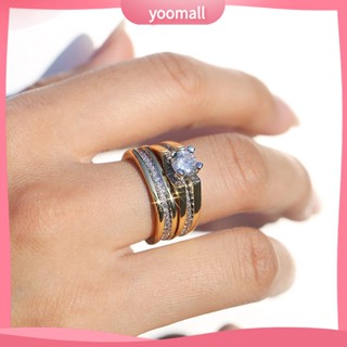 Set 2 Nhẫn Đính Hôn Đính Đá Zircon Hai Màu Sắc Lấp Lánh Dành Cho Nữ
