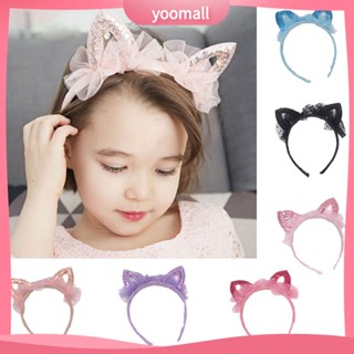 Băng Đô Cài Tóc Hình Tai Mèo Bằng Vải Gạc Đính Kim Sa Dễ Thương Cho Bé Gái
