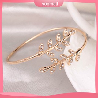 Vòng Tay Mở Hình Chiếc Lá Đính Đá Điều Chỉnh Được Thời Trang Cho Nữ