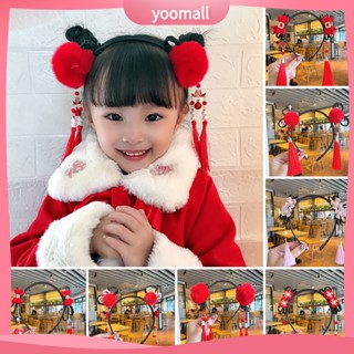Băng Đô Nơ Đính Ngọc Trai Co Giãn Phối Bóng Lông Tua Rua Phong Cách Trung Hoa Mừng Năm Mới Cho Bé Gái