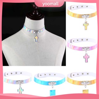 [YM] Vòng Cổ Choker Ngắn Mặt Vuông / Chữ Thập Màu Laser Phong Cách Harajuku Punk Cho Nữ