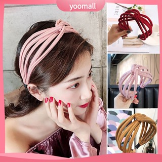 Băng Đô Cài Tóc Bản Rộng Thắt Nút Họa Tiết Kẻ Sọc Màu Trơn Thời Trang Cho Nữ