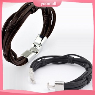 Vòng Tay Da Mặt Mỏ Neo Kim Loại Phong Cách Vintage Cho Nam