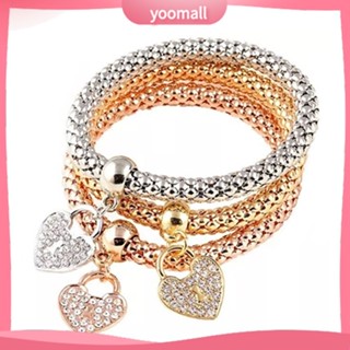 Set 3 Vòng Tay Co Giãn Mặt Trái Tim Đính Đá Thời Trang Cho Nữ